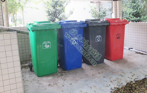 小區垃圾分類管理大量投入垃圾桶