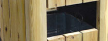 景區提蓋鋼木單桶垃圾桶桶頭細節圖